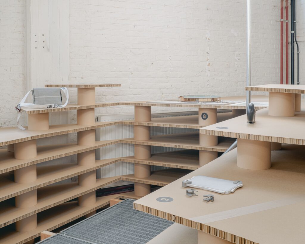 Designed as temporary furniture, it combines lightness, strength, and clean design.